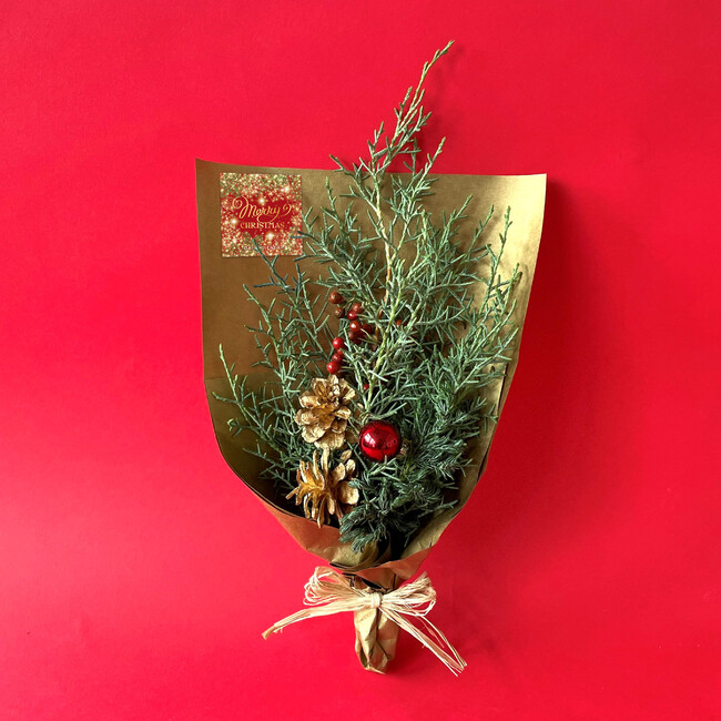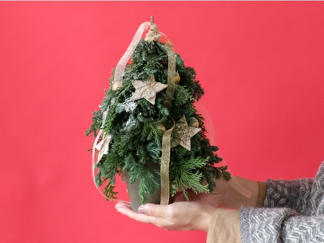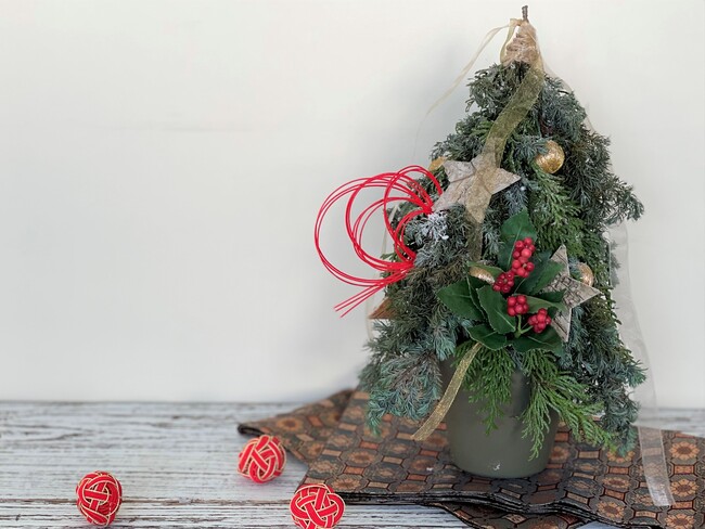 クリスマスにぴったりなミニツリーは、カスタマイズして正月飾りにも。ギフトやご自宅用にもおすすめです。器付きのためそのまま飾って楽しめます。