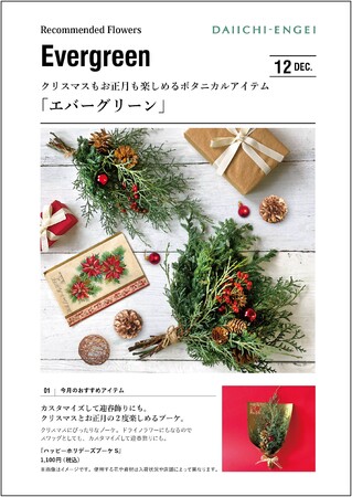 花と緑に関する事業を展開する第一園芸株式会社(本社:東京都品川区、代表取締役社長:伊藤昇、三井不動産グループ)は、12月のおすすめの植物である「クリスマスも正月も楽しめるボタニカルアイテム」のフェアを、12月1日(木)から第一園芸の全店舗で展開します。