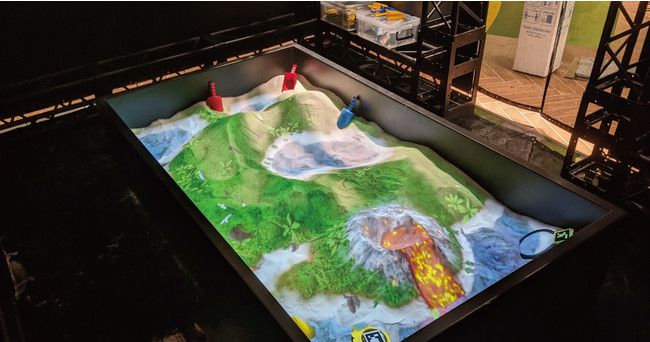 「SAND PARTY!」は大阪会場に続き、「やってみた」体験の一つ、「地球を掘ってみた」体験として展示されています。 プロジェクションマッピングやセンシング(センサー)技術を駆使した“みらいの砂場”で、砂を集めて陸地や海を作ったり、”魔法の虫眼鏡”で砂の上の生きものの名前を調べたりと、子どもたちの創造力や探求心をはぐくむ「やってみた」体験をお楽しみいただけます。