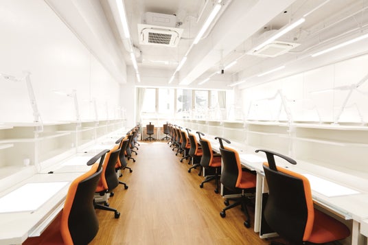 マンガ・イラストルームでは、トレース台・アームライトを設置。描くことに集中できる個人の専用ブースとしての設計になっている。