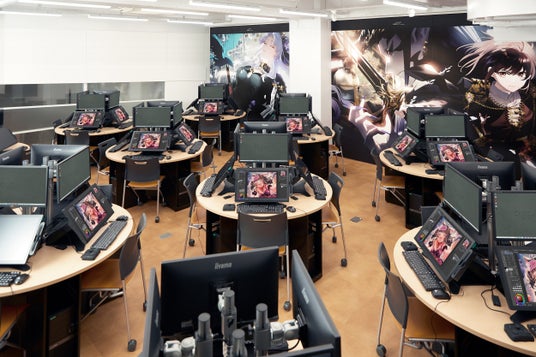 Wacom Cintiq Pro 22を導入したデジタルクリエイションスタジオ。左手デバイスやサブディスプレイも設置し、プロを目指す学生にとって最適な制作環境になっている。