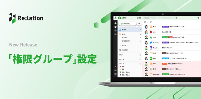 株式会社インゲージ(本社:大阪府大阪市、代表取締役CEO:和田 哲也)が開発・提供する顧客対応クラウド『Re:lation(リレーション)』は、一括でユーザの権限設定ができる「権限グループ」機能を新たにリリースいたしました。