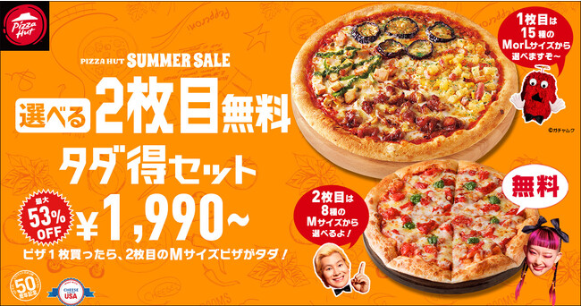 日本ピザハット株式会社(社長:中村 昭一、本社:神奈川県横浜市、以下:ピザハット)が展開する世界最大級のピザチェーン「ピザハット」は、今年で日本上陸50周年を迎えます。今回、「ピザハット サマーセール」と銘打ち、「復刻レジェンド4」と「Hut Melts(マルゲリータ)」の夏のスペシャルセットを2023年7月11日(火)~ 7月23日(日)の期間限定で販売いたします。最大2,540円OFFとなる「夏のスペシャルセット」に加え、「選べる2枚目無料 タダ得セット」のおトクなキャンペーン目白押しのピザハット サマーセールをお見逃しなく!