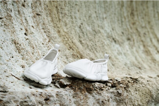 2023AWコレクションにて、フレッシュでクリーンなルックスのスリッポンデザインが新たに加わり、ホワイト、ブラックのモノトーンで展開します。柔らかなレザーアッパーが足を包み込み、驚くほど軽い履き心地を提供。履き口の周りに寄せた細かいギャザーとボリューム感のあるソールの絶妙なバランスは、ジェンダーニュートラルな雰囲気と共にこなれ感のある足元を演出してくれます。