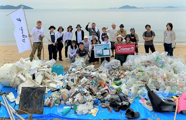 コールマンは、フレンチカジュアルを代表するパリのブランド「agnes b.(アニエスベー)」(以下:アニエスベー)、アニエスベーの創業者が創設した海洋生態系の調査研究を行うタラ オセアン財団の日本支部である一般社団法人タラオセアンジャパン(以下:タラ オセアン ジャパン)と共に、瀬戸内海に浮かぶ島「粟島(香川県三豊市)」に漂着するプラスチックごみを回収する活動「Awashima Heart Project」を発足しました。第一回として、6月10日(土)~6月12日(月)の3日間にわたって、キャンプを楽しみながら海岸でのクリーンアップ活動を行い約300kgのプラスチックを中心とした海洋ごみを回収しました。