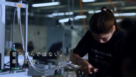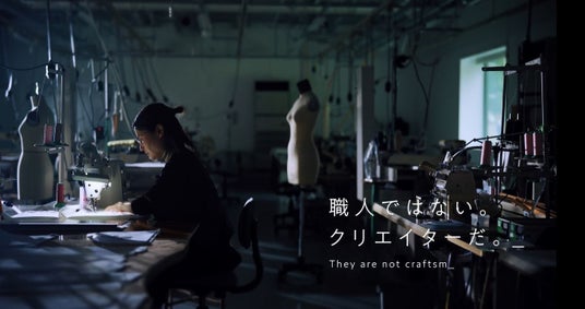 撮影は、『KASHIYAMA SAGA』工場の多くのスタッフが参加し、現場の息遣いが伝わってくるような臨場感のもと行われました。オリジナルの軽快なジャズ調のリズムに合わせ、「工場ではない。ラボだ。」「職人ではない。クリエイターだ」「服づくりではない。幸せづくりだ。」「今日も世界めがけてつくる。」といった私たちの想いをキャッチコピーにし、テロップとナレーションで紹介。“世界へつづく、クリエイティブ・ファクトリー。”のコンセプトのもと、単なる縫製工場ではなく、クリエイティブな服づくりと、生産した製品が、人々の生き生きとした日常に彩りを添える様子を描いています。