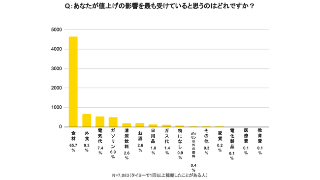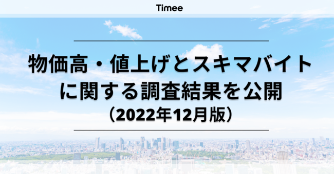 スキマバイトサービス「タイミー」を提供する株式会社タイミー(所在地:東京都豊島区、代表取締役:小川 嶺)は、「タイミー」の働き手7,083名を対象に、2022年中に世間から注目を集めている「物価高・値上げ」と「スキマバイト」に関する実態調査を実施いたしました。2022年5月、10月にも同様の調査を実施し、今回は第3弾となります。