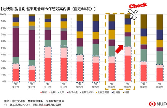 - 愛知県や静岡県など、機械関連産業の活発な中部地方において、関わりの深い品目の倉庫需要は顕著に増加