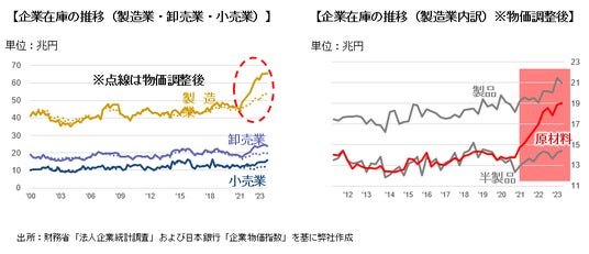 2021年以降、直近に至るまで、企業在庫は原材料在庫を中心に継続的に増加