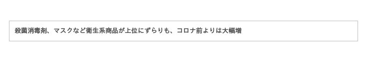 昨年、飛躍的に伸長した衛生系商品は、2位・殺菌消毒剤、5位・マスクなど5つが10位以内