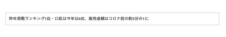2020年コロナで苦戦した化粧品は、3位・ほほべに、6位・口紅とマスクで隠れる部分は今年も続落