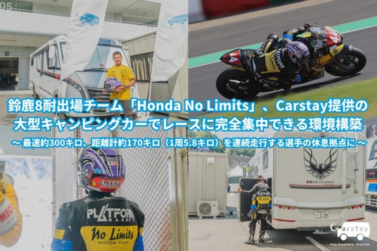 キャンピングカーと車中泊スポットのシェアリング・サービス、車両製造、改装支援など国内最大級のバンライフ※のプラットフォーム事業を展開するCarstay(カーステイ)株式会社(本社: 神奈川県横浜市、代表取締役: 宮下晃樹(みやした こうき))は、2025年8月1日(金)~3日(日)に鈴鹿サーキット(三重県鈴鹿市)で開催されたバイクのレース「2025 FIM世界耐久選手権“コカ・コーラ”鈴鹿8時間耐久ロードレース 第46回大会(鈴鹿8耐)」参戦した鳥羽海渡選手が所属するチーム「Honda No Limits」に“動く休憩”や“動く宿泊”拠点として、大型キャンピングカー「LMC EXPLORER COMFORT(エル・エム・シー・エクスプローラー・コンフォート)I725G」を提供し、レースに完全集中できる環境を構築しました。