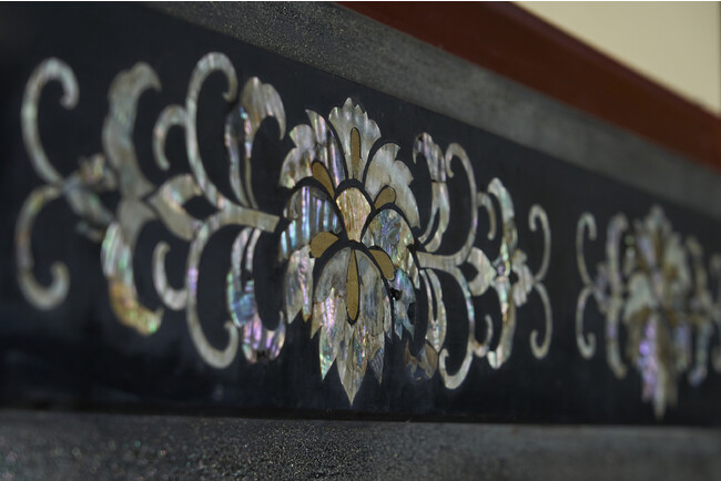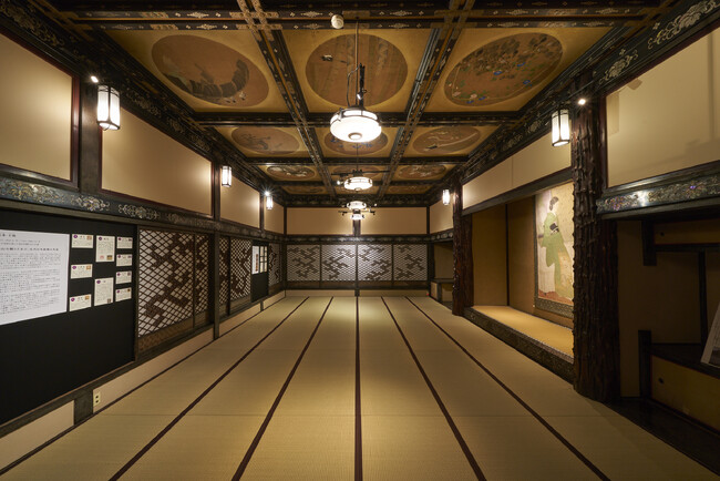 細かな文様で彩られた七宝細工や螺鈿細工、樹齢300年を超える巨木に彩色彫刻を施した床柱や、1mmのずれもなく作られた組子障子、壁や天井を彩る日本画など、あらゆる分野の超絶技巧が集結した空間は、美術ファン垂涎の景色です。一般的な博物館で紹介される模型やパネルの展示では体感できない日本建築の匠の技を間近で堪能できるのは、昭和初期から現存する本建造物ならではです。