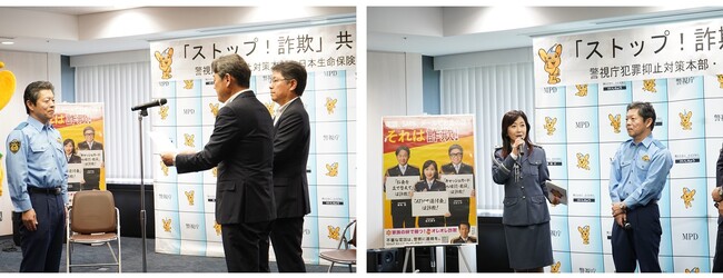 この度、警視庁本部庁舎にて「『ストップ!詐欺』共同宣言」が行われました。第一部では、日本生命保険相互会社と警視庁による共同宣言がなされ、特殊詐欺被害防止のためにストップ詐欺運動に賛同し、犯人からの電話に出ない対策を広め、大切な財産を守る運動に取り組むと宣言しました。
