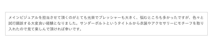 また、イベントテーマソングを音楽クリエイター・jon-YAKITORYさんに制作していただくことが決定いたしました。楽曲タイトルはイベント名にもなっている「THUNDERBOLT」。楽曲は後日発表予定ですので、続報にご期待ください!
