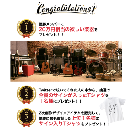 各メンバーは今後のライブ、楽曲作成に使用できる楽器を購入すると公言しており、投票を行なったファンにも嬉しいプレゼントになります。