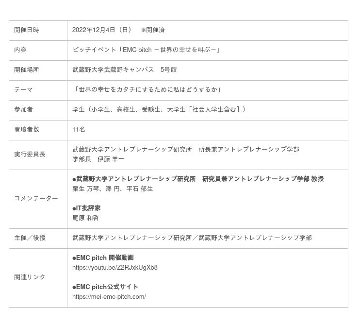 ■開催動画「EMC pitch -世界の幸せを叫ぶ-」:https://youtu.be/Z2RJxkUgXb8