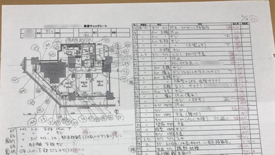 建設、建築業界におけるマンション、分譲・注文住宅などの完成検査などで、不具合指摘の記録を残す業務。不具合箇所は目視検査の上、写真を撮影、図面に手書きでピン打ちして、不具合の箇所と個数 などを不具合箇所を記録する業務の効率化が可能。