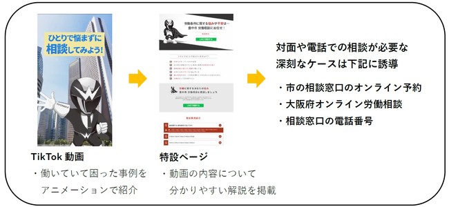 実証実験では、雇い止めやパワハラなどの労働トラブルを抱えながらも、従来の広報手段では相談につながりにくい若年層をターゲットに、TikTokによる動画配信を行います。
