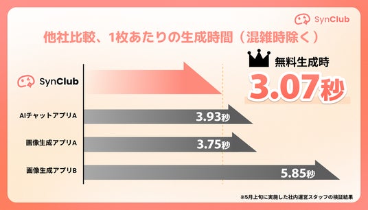 画像生成機能が備わるスマホアプリでの生成時間をSynClubと比較すると、無料生成時でも早いことがわかります。