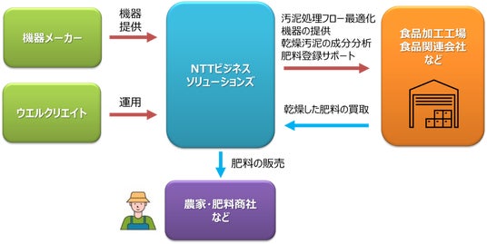 NTTビジネスソリューションズ株式会社(本社:大阪府大阪市、代表取締役社長:木上 秀則、以下、NTTBS)と株式会社ウエルクリエイト(本社:福岡県北九州市、代表取締役:松尾 康志、以下、ウエルクリエイト)は、地域食品資源循環ソリューション※1の新たなメニューとして、食品工場などの排水処理過程で発生する汚泥を肥料として活用する「汚泥肥料化パッケージ」の提供を2025年12月18日(木)より開始いたします。