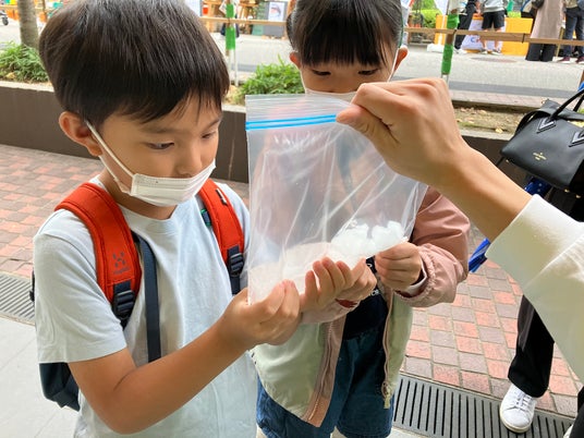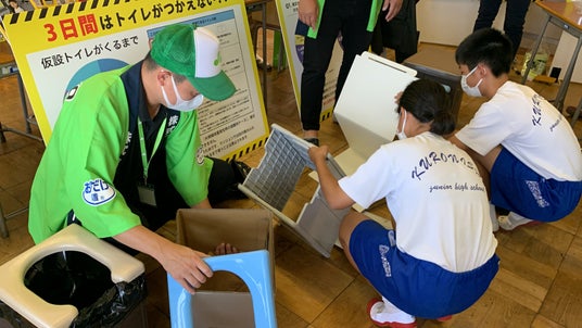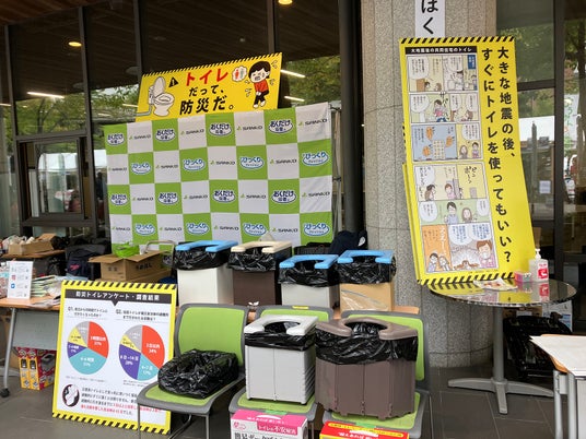 関西大学 × サンコー(防災アイテムを販売)× 地域の方々災害は突然に!親子で楽しく防災を学ぶ!簡易トイレの展示&凝固剤の体験会を実施