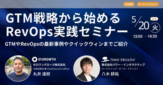 株式会社パワー・インタラクティブは、無料ウェビナー『GTM戦略から始めるRevOps実践セミナー ~GTMやRevOpsの最新事例やクイックウィンまでご紹介』を、5月20日に開催します。