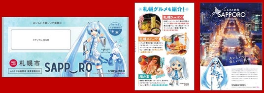 札幌市ふるさと納税オリジナルイラストは、この日にお披露目!オリジナルデザインの雪ミクの大型パネルの展示や、パンフレットの配布などを通して、札幌市のまちや返礼品の魅力をお伝えします。