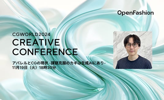 株式会社OpenFashion(本社: 東京都港区、代表: 上田 徹)は、同社にてCGデザイナーを務める牛山直輝が、11月19日(火)18時30分より、CG業界国内最大級のカンファレンスイベント「CGWORLD クリエイティブカンファレンス」に登壇することをお知らせします。事前登録制(無料)でどなたでもご参加いただけるカンファレンスとなっておりますので、ファッション業界におけるCGの活用最前線についてお話するこの機会にぜひご登録ください。