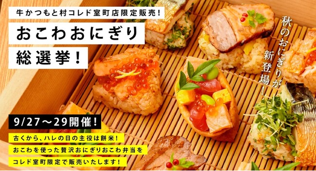 その中でも最新メニューをいち早く展開する『牛かつ もと村 コレド室町店』で、9月27日(火)~29日(木)の3日間、「おこわおにぎり総選挙」を実施いたします。
