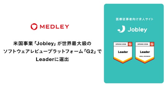 株式会社メドレー(本社:東京都港区、代表取締役社長:瀧口 浩平、以下メドレー)が米国で展開する医療求人サイト「Jobley」は、世界最大級のソフトウェアレビュープラットフォーム「G2」が発表した「Spring 2026 Grid(R) Report」において、Job Search Siteカテゴリーの2部門で最上位の評価である「Leader」を獲得しました。
