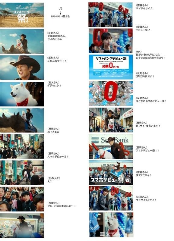 さらに、ソフトバンクショップのクルー役として齋藤さんも登場。CM楽曲には、シブがき隊の名曲「NAI・NAI 16」を「スマホデビュー祭」仕様にした替え歌を使用し、“サイ”尽くしのユーモアあふれる映像に仕上がりました。同日には、スマホデビューについて悩む親子のもとへサイに乗って突入した反町さんと齋藤さんが、「ソフトバンクデビュー割」の魅力を解説するウェブCM「スマホデビュー祭 お宅訪問」篇もYouTubeチャンネルで公開します。