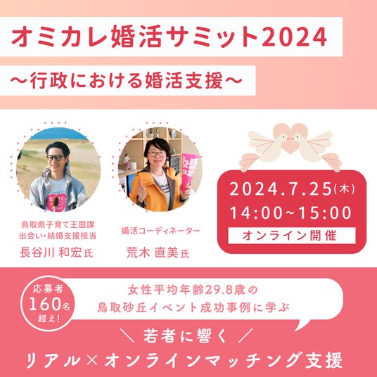 連携協定を締結した鳥取県との連携企画第一弾として、オミカレが企画・運営を行った「鳥取砂丘×マッチングイベント」の成功を例に、婚活における若者集客のポイントや、婚活者の"いま"の情報をお伝えいたします。