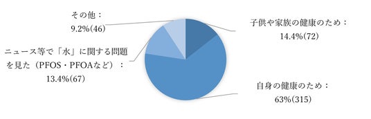 また、約3人に1人(33.2%)が普段の飲料水に関して意識を変えたいと考えており(図2)、その理由の多くは「自身の健康のため」(63%)と、健康志向の高まりが浮き彫りになりました。(図3)