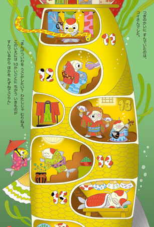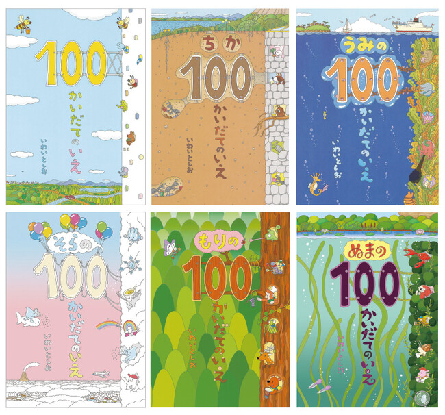 メディアアーティストとしても活躍している絵本作家、いわいとしおさんが手がける「100かいだてのいえ」シリーズは、これまでに『100かいだてのいえ』(2008年)、『ちか100かいだてのいえ』(2009年)、『うみの100かいだてのいえ』(2014年)、『そらの100かいだてのいえ』(2017年)、『もりの100かいだてのいえ』(2021年)の5作を刊行。縦に開く大迫力の画面、こまかく描きこまれた生きものたちの暮らしなどが特徴で、1作目が刊行されるとすぐに子どもたちの心をとらえ、刊行10年でミリオンセラーに。累計部数は427万部を突破し、シリーズ刊行15周年となる今年、6作目となる『ぬまの100かいだてのいえ』を刊行しました。