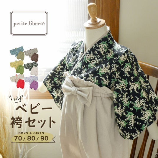 家族で写真を撮ったりお出かけしたりが楽しくなる、特別な日の装いにふさわしい赤ちゃん用の袴セットは、着替えがしやすいよう工夫されたデザインに、甘すぎないシックな花柄と上品な色合いが特徴です。『petite liberte (プチリベルテ)』のブランドコンセプトである「性別の価値観にとらわれないジェンダーレスフリー」なデザインに仕上がっています。70~90cmの3サイズをご用意。お食い初めや初節句など様々なイベントごとにおすすめです。