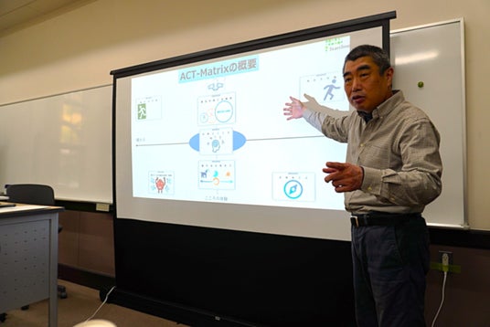 今回は米山教授のもとで行動療法や応用行動分析などを学んでいる学生11名に対して、当社CBSヒューマンサポート研究所主幹主任研究員の刎田文記が「さまざまなCBSアプローチと実践場面での活用」と題した講義を開催しました。