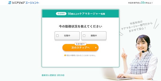 シニア専門人材紹介のシニアジョブエージェント、3月21日からケアマネを取扱職種に