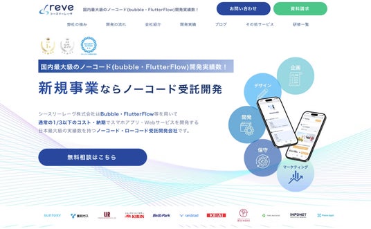 シースリーレーヴ株式会社は、ノーコード・ローコード開発を活用し、Webサービス・アプリ開発を企画からデザイン、開発、運用までワンストップで支援する開発会社です。