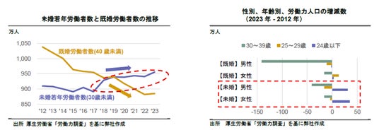 - 需要の源泉となる若年・未婚労働者は近年増加傾向