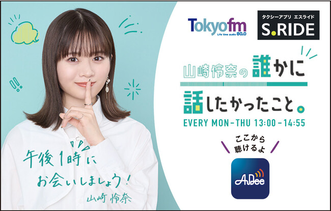 S.RIDE株式会社(本社:東京都港区、代表取締役:橋本洋平、以下S.RIDE) は、株式会社エフエム東京(本社:東京都千代田区、代表取締役社長:黒坂 修) と連携し、タクシーアプリ「S.RIDE(エスライド)」の公式アンバサダーである山崎怜奈さんが出演するラジオ番組、TOKYO FM「山崎怜奈の誰かに話したかったこと。」(以下、ダレハナ)とコラボレーションし、12月6日(水)よりダレハナラッピングタクシー「ダレハナS.RIDE」が都内で走行を開始することをお知らせいたします。
