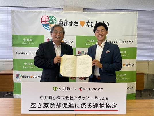 解体工事DXプラットフォーム「クラッソーネ」を運営する株式会社クラッソーネ(愛知県名古屋市、代表取締役CEO:川口 哲平、以下「当社」)は、神奈川県中井町(以下、「中井町」)と「空き家除却促進に係る連携協定」を締結いたしました。昨今、全国的にも社会課題となっている空き家問題への対策として、中井町の空き家除却を推進することで、安全安心なまちづくりを目指します。また本締結で、当社の自治体連携の実績は90自治体(行政運営の団体含む)となりました。