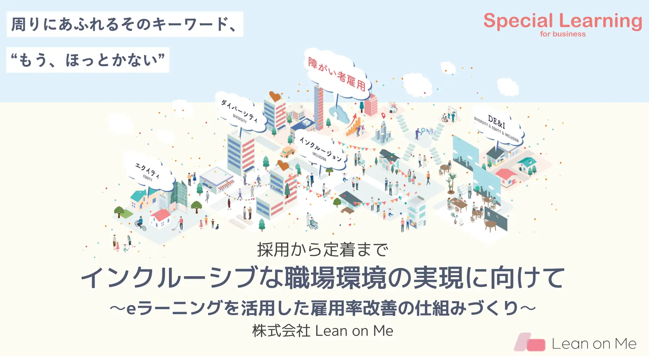 リーンオンミーは、障がいのある方への理解を深めることが、企業や組織の持続的な成長につながると考え、これまで「Special Learning for business」を通じて、障がい特性の基礎知識から現場での具体的な対応方法までを体系的に学べるeラーニングを提供してきました。