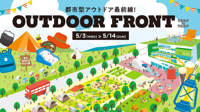 「OUTDOOR FRONT」は大規模複合街区「有明ガーデン」とイベントプロデュースやオリジナルブランドを展開する「TARPtoTARP(タープトゥタープ)」がタッグを組んで開催するアウトドアイベントです。今年は有明ガーデンのお隣「東京臨海広域防災公園」も使用し、規模を拡大して開催されます。