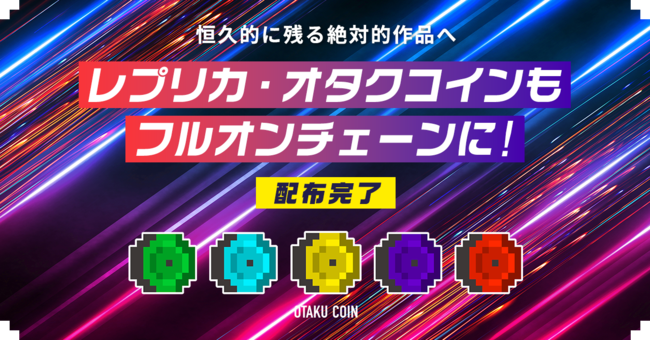 本日、CryptoGames株式会社・一般社団法人オタクコイン協会は、2022年3月10日0:00(JST)時点の1万種限定NFT『レプリカ・オタクコイン』所有者へPolygon上でフルオンチェーン化した『レプリカ・オタクコイン』の追加配布が完了したことを発表しました。『レプリカ・オタクコイン』は公式ショップで定期的にオークション販売されており、毎回延長戦での争いになる注目のNFTコレクションです。