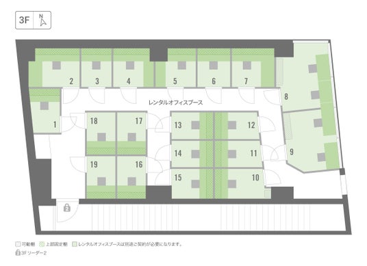 席数:【コワーキングスペース】29席/【レンタルオフィス】19戸