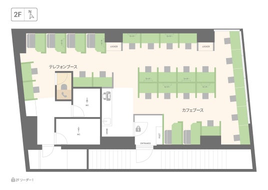 設備:Wi-Fi、フリードリンク、無料プリンター、ロッカー、ポスト、登記可、WEB会議用個室