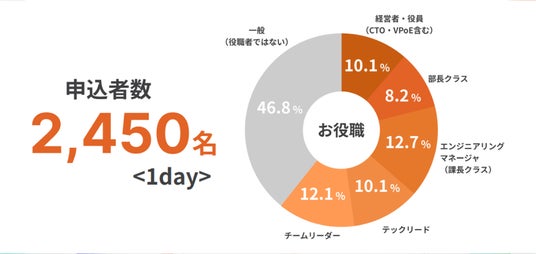 さらに、お申込者・現地参加者ともに約60%が、リーダーやエンジニアリングマネージャー(EM)以上の職種・役職層で構成されており、アーキテクチャに関する意思決定者層へリーチできる貴重なイベントです。