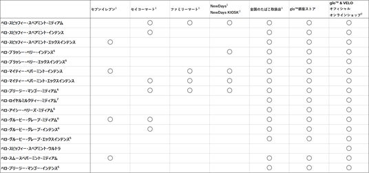 これまで「VELO」は、glo(TM)公式オンラインストア[2]やglo(TM)銀座ストア、全国のたばこ取扱店[1]に加え、ファミリーマートやNewDays・NewDays KIOSKなどの一部コンビニエンスストア[1]をはじめとする複数の販売拠点で展開してまいりました。2022年から2025年の約3年間でオーラルたばこ製品の利用者数が約3倍に増加[3]したことを受け、より多くのお客様にとってVELOをお買い求めやすくなるよう、取扱店舗数を拡大いたします。2026年3月3日より全国のセブン‐イレブン[1]、また2026年3月16日よりセイコーマート[1]にて、順次販売開始いたします。