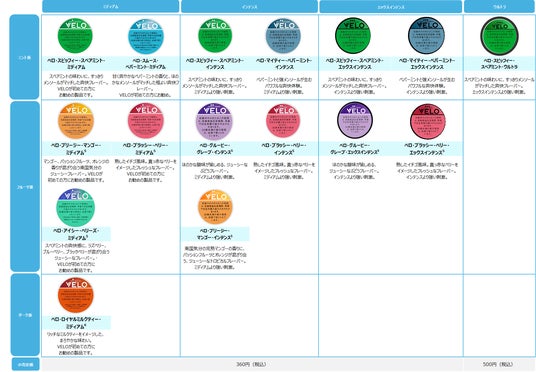 オーラルたばこ「VELO」製品一覧